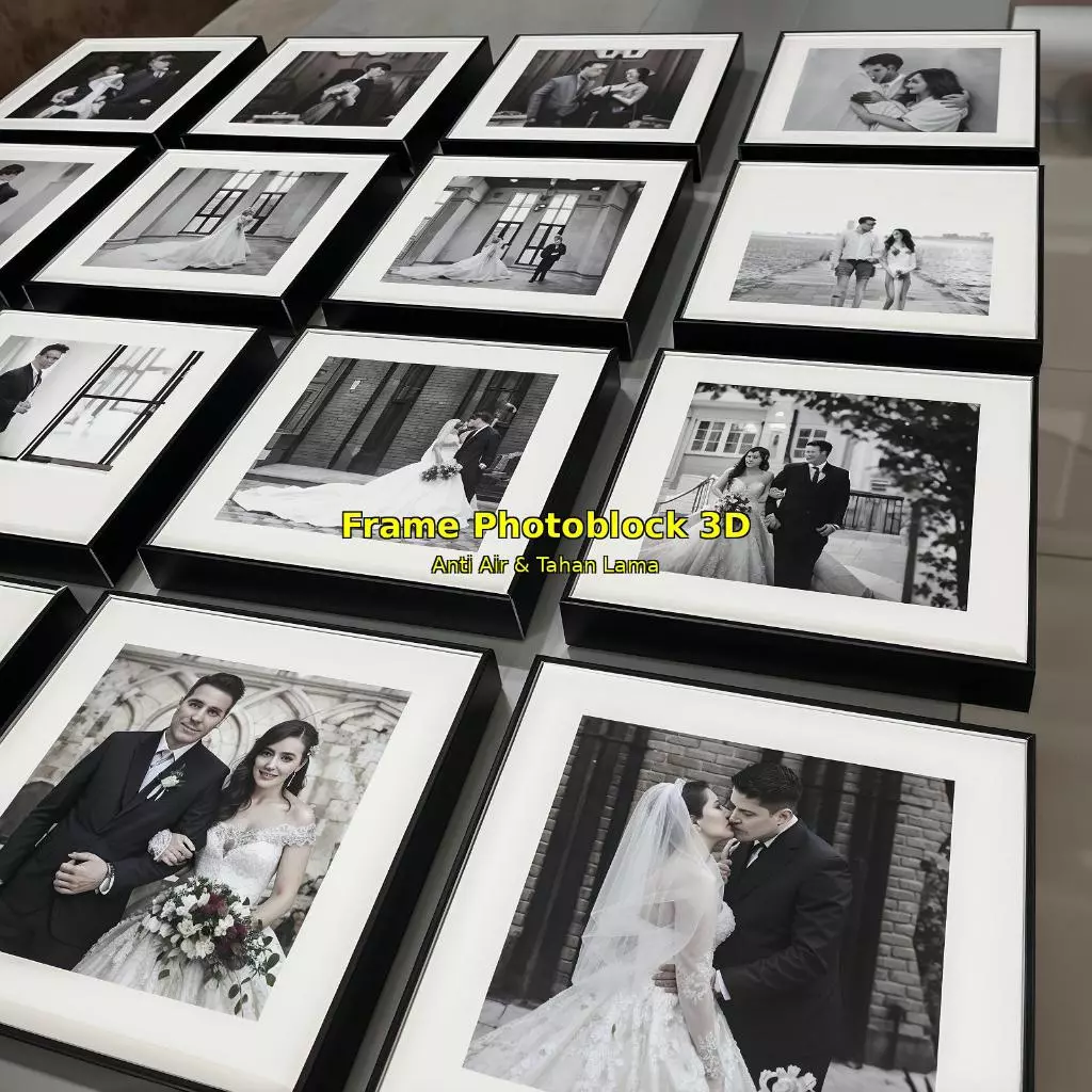 Frame Photoblock 3D bahan fiber anti air ukuran 20×20. Cetak foto custom tanpa paku, tahan lama, warna tajam, cocok untuk dekorasi dan hadiah unik.