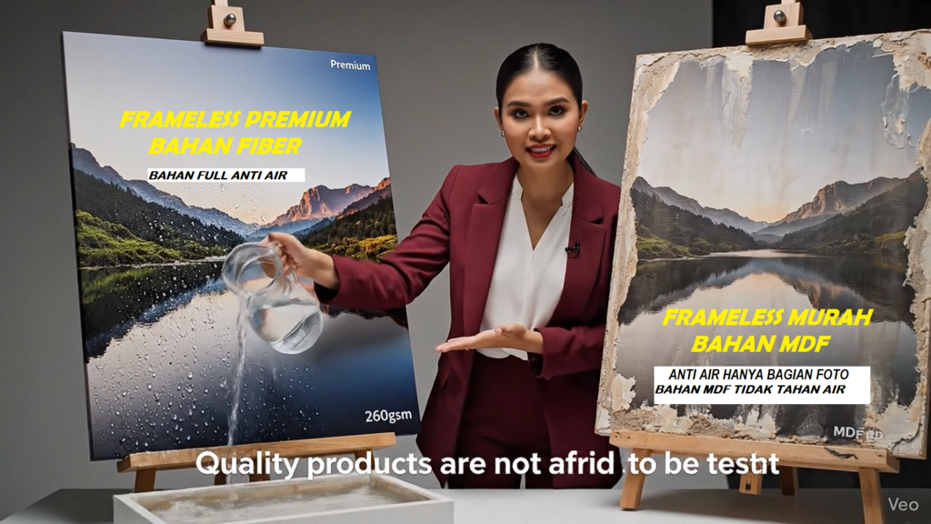 Sekilas, semua foto frameless terlihat sama dari depan. Padahal perbedaan paling krusial justru ada di bagian rangka dan ketebalan papan.